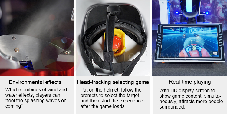 3. Different from shooting with real guns in 5D/7D/8D cinema,9D VR egg cinema uses the advanced head tracking technology.Just move your head to aim at your target,then press the bottom to shoot it. you can use your head control the direction you want!